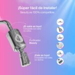 Directo a la flor de tu ducha, de alto caudal, elimina Cloro, impurezas, feo olor y particulas de sarro, prolonga el efecto de tratamientos de cabello, protege la tinta, piel suave protegida con agua purificada, optimiza la efectividad de jabones, shampoo y cremas.