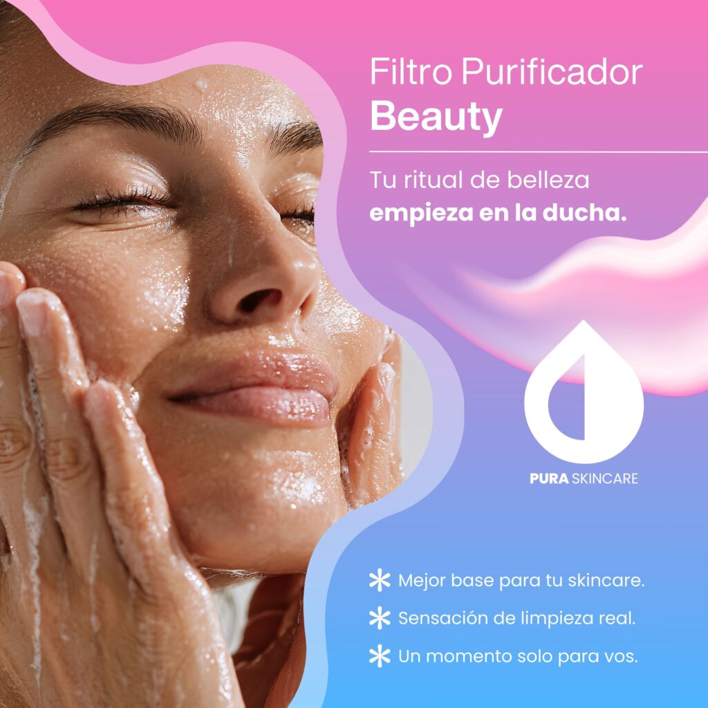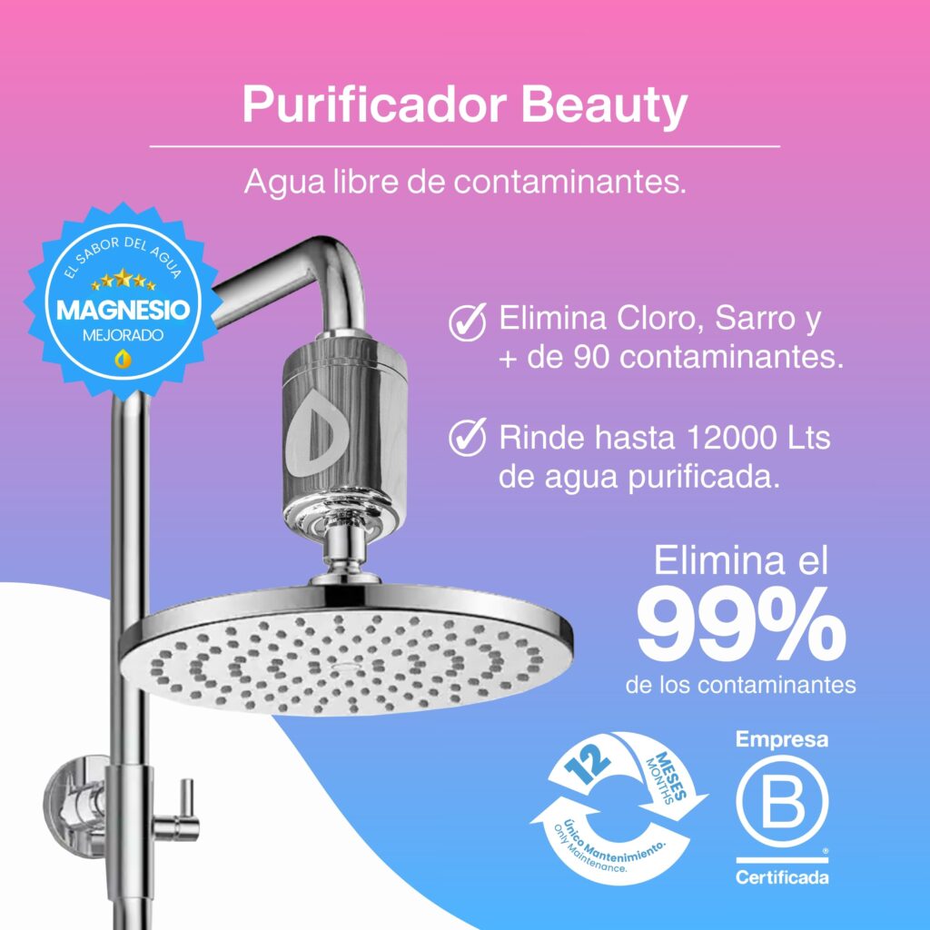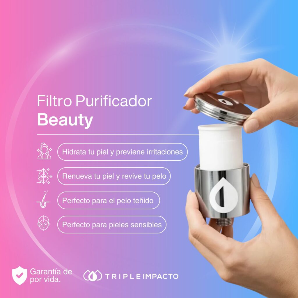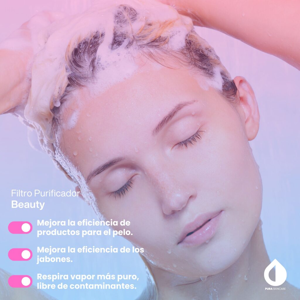 Directo a la flor de tu ducha, de alto caudal, elimina Cloro, impurezas, feo olor y particulas de sarro, prolonga el efecto de tratamientos de cabello, protege la tinta, piel suave protegida con agua purificada, optimiza la efectividad de jabones, shampoo y cremas.