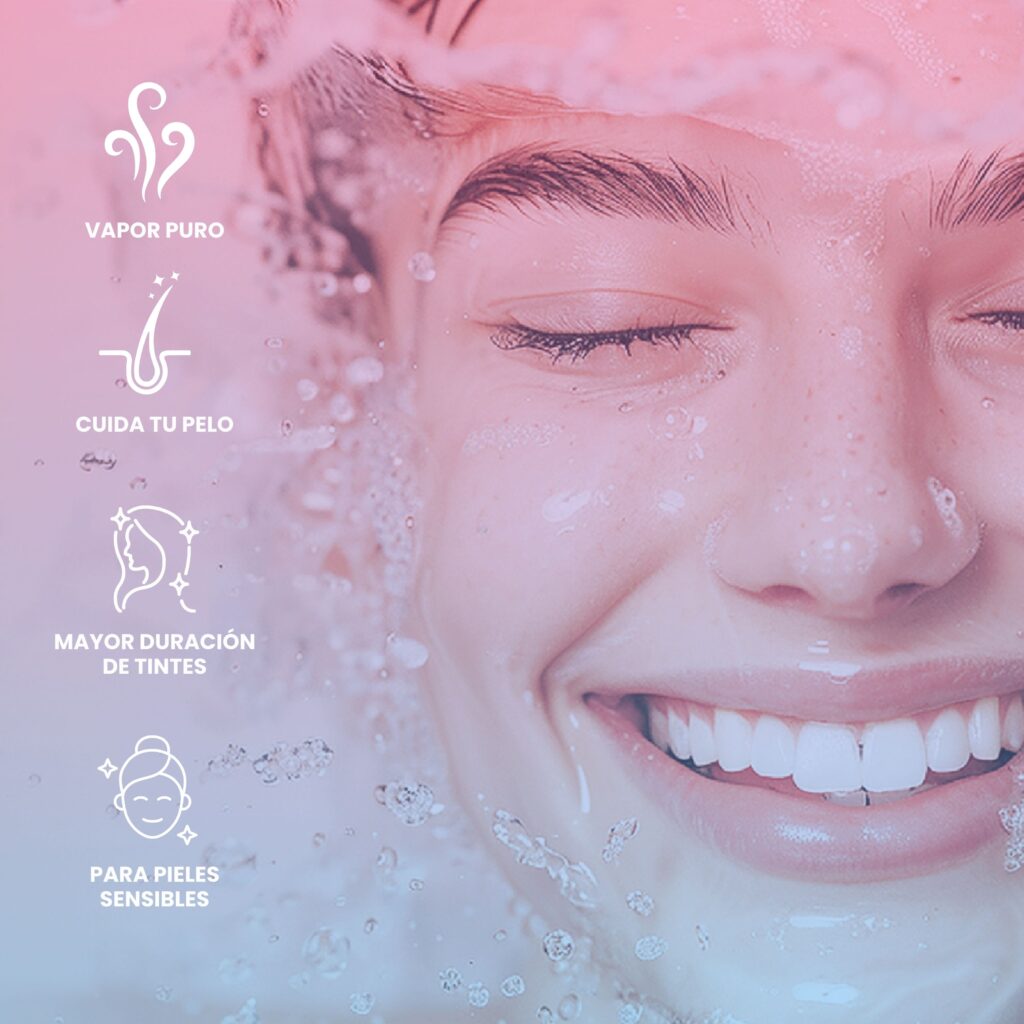 Cabello más saludable y sedoso. Piel suave e hidratada. Mejora la efectividad del shampoo, cremas y jabones. Prolonga tratamientos capilares y tintas. -Cuerpo libre de cloro e impurezas, vapor puro. Apto para bebés. Ultraliviano. BPA Free. Componentes de grado alimenticio.