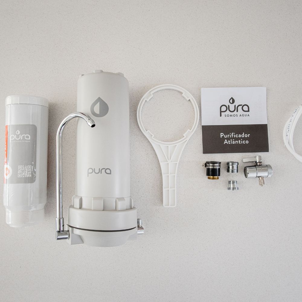 Se aprovecha el 100% del agua, no tienen rechazo. Pura Atlántico sobre y bajo tarja funcionan con la presión del agua de entrada, es decir que aprovechan la energía que viene con el agua para hacer el proceso de purificación. El agua ingresa al equipo, toma contacto con la tecnología de purificación del núcleo interno y sale purificada, esto hace que sea muy práctico instalar un PURA para obtener agua rica, sin plásticos de un solo uso ni transportes innecesarios.