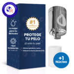 Directo a la flor de tu ducha, de alto caudal, elimina Cloro, sustancias químicas, sarro, prolonga el efecto de tratamientos de cabello, protege la tinta, piel suave protegida con agua purificada, optimiza la efectividad de jabones, shampoo y cremas.